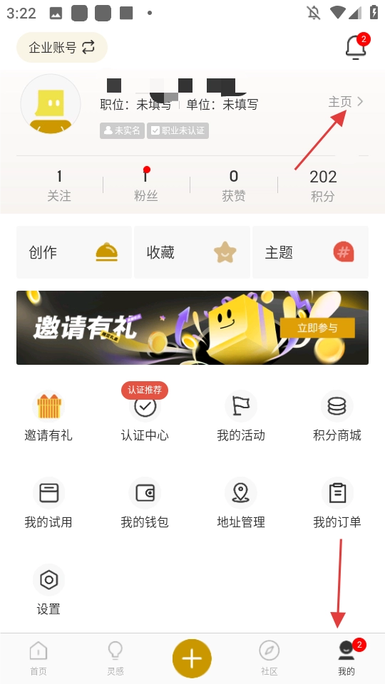 在“我的”页面点击【主页】,进入个人主页。