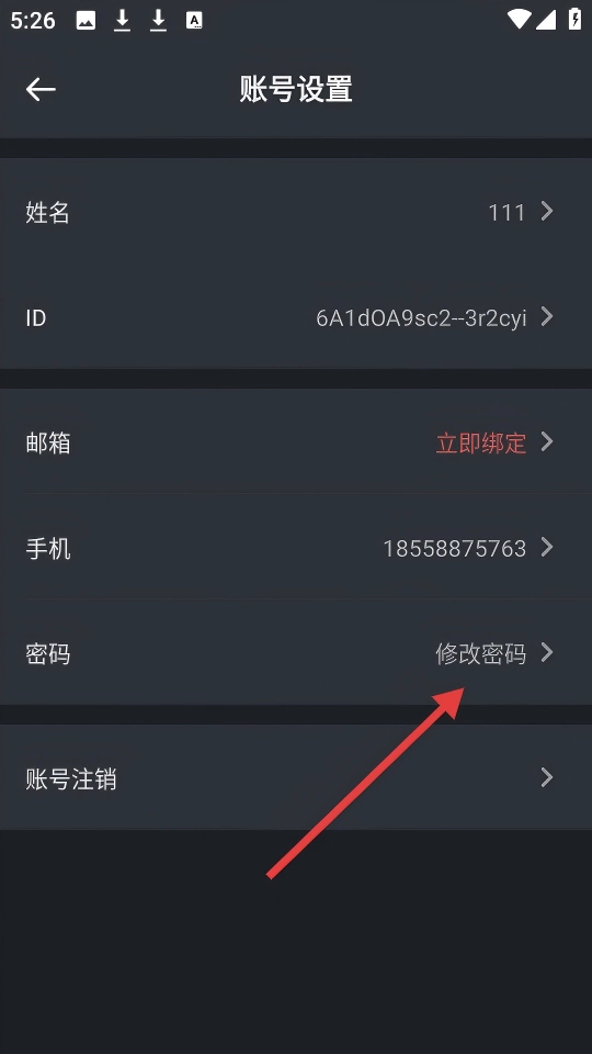 进入【账号设置】页面后,点击【修改密码】选项,就能开启密码修改的流程了。
