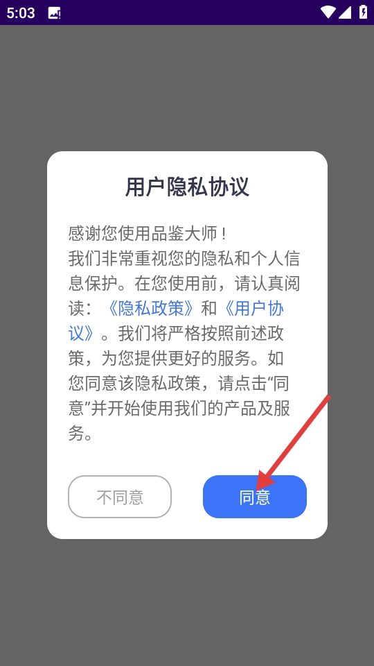 当用户隐私协议弹窗出现时,点击【同意】按钮,即可进入应用的主界面。