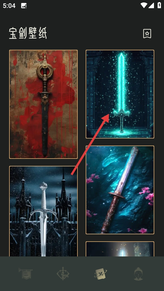 在主界面,点击底部的壁纸类功能入口,进入宝剑壁纸列表页。