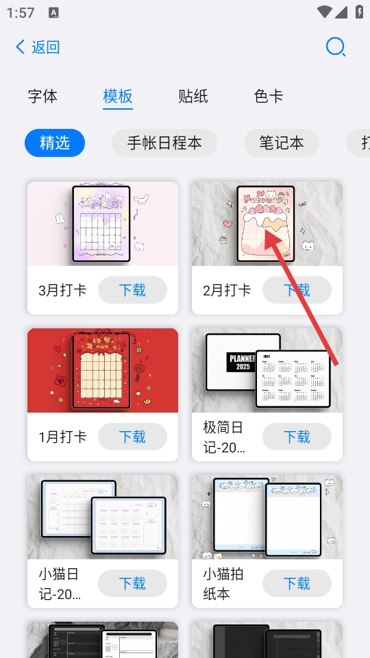 在素材中心的模板分类里,找到并选择【2月打卡】模板,随后进入该模板的详情页面。