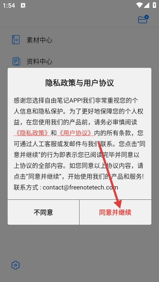 在隐私政策和用户协议的弹窗里,点击【同意并继续】按钮,就能进入应用的主界面了。