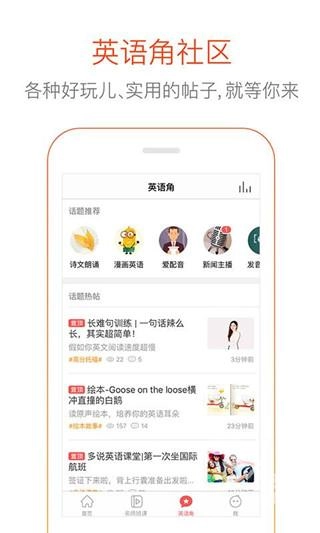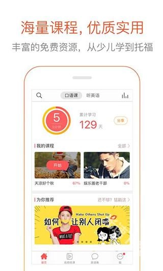 名人演讲、视频娱乐、时尚潮流内容,想听吗?这里采用字幕与音频同步技术,独家配备语音高亮跟随功能,还支持离线学习哦。