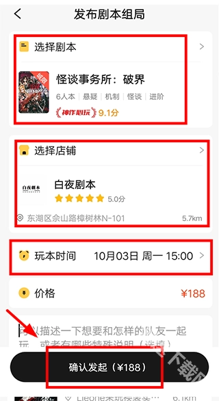 选好剧本,店铺,时间后,点击【确认发起】即可。