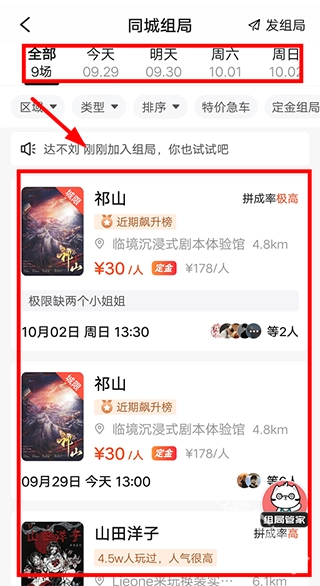 要是不想自己组织剧本杀活动,也能在【同城组局】页面里,报名加入其他人发起的组局。