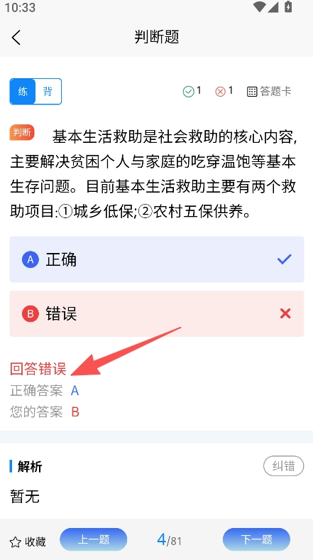 查看答题结果,知晓题目对错与正确答案,利用错题来弥补知识漏洞。