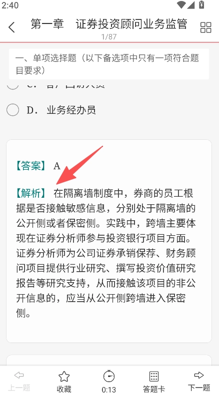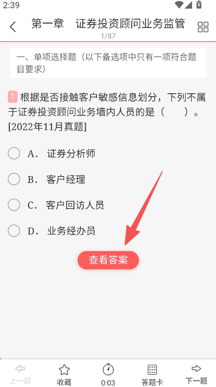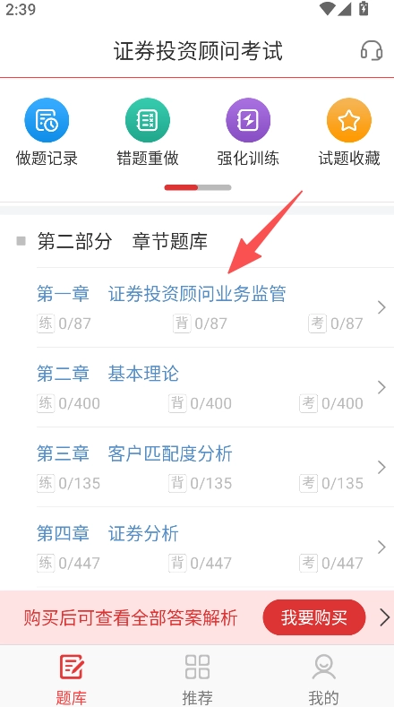 进入章节题库后,挑选证券投资顾问业务监管等相关章节,然后着手做题。