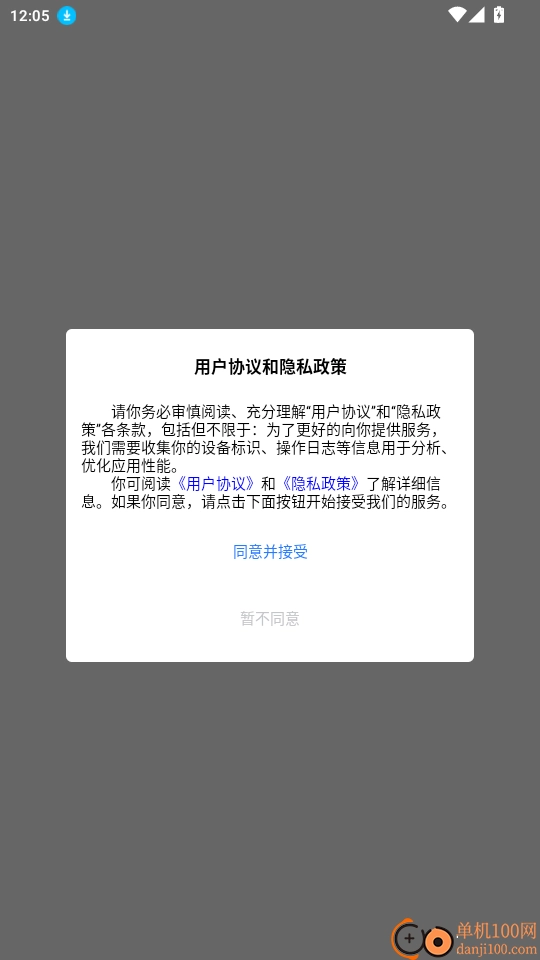 打开软件后,仔细阅读“用户协议与隐私政策”,随后点击“同意并接受”按钮即可进入。