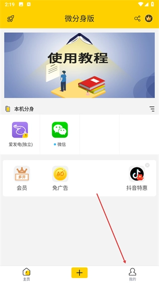 打开微分身版应用,点击底部导航栏的我的选项。