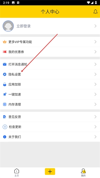 进入个人中心页面,找到隐私设置选项并点击。