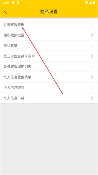 在隐私设置页面,选择系统权限管理进入对应界面。