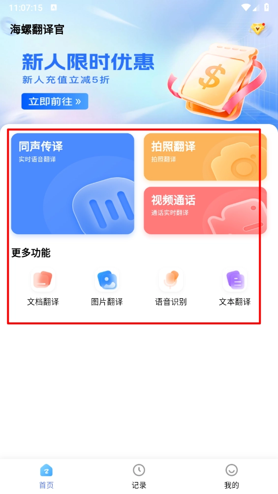 首页整合了多种翻译模式,可根据实际需求一键快速进入对应的翻译功能。