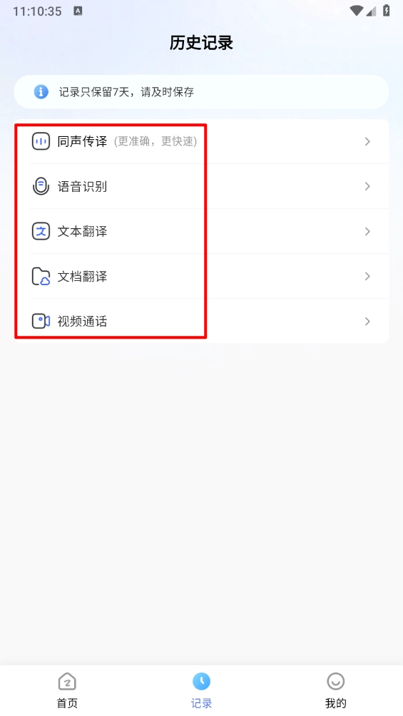 返回切换到“记录”板块,就能查看对应的翻译记录,不过要留意的是,这些记录仅保留7天时间。