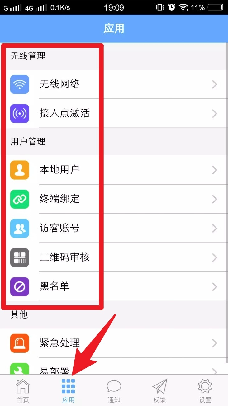 切换至底部应用栏,即可进入无线网络、接入点、黑名单等管理模块,该模块支持功能丰富的后台操作。
