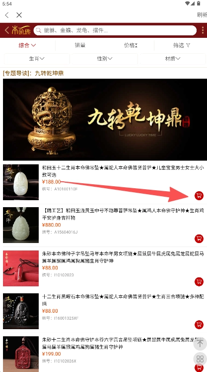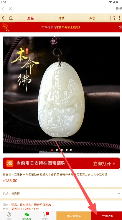你可以在商品列表里挑选像“和田玉十二生肖本命佛吊坠”这样的目标商品,进而查看它的详情。