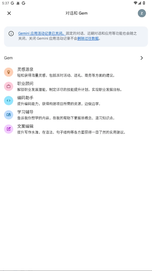 Gemini人工智能是一款功能强大的智能交互软件,用户可以在这里完成问答,支持多种输入形式,能够适用于各种场景中,简单直观的操作满足不同水平用户的操作需求,齐全的功能等你体验,感兴趣的小伙伴不要错过,赶紧来本站体验一番吧。