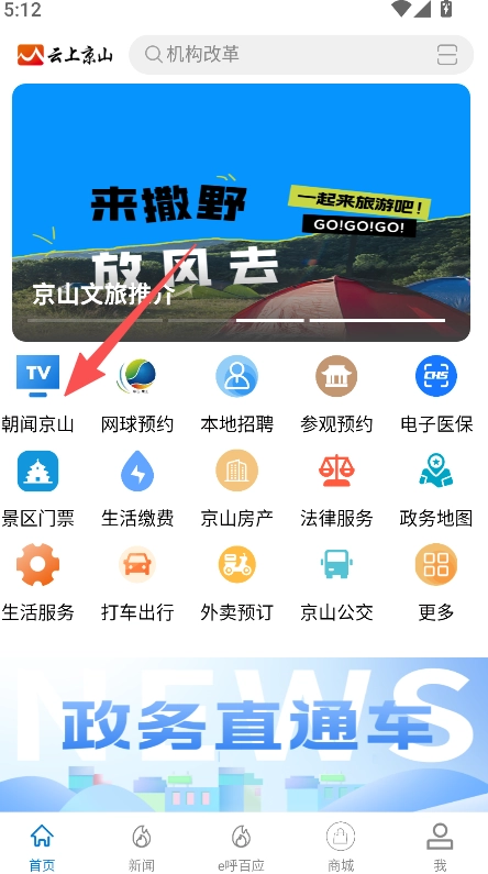 打开点击朝闻京山入口。