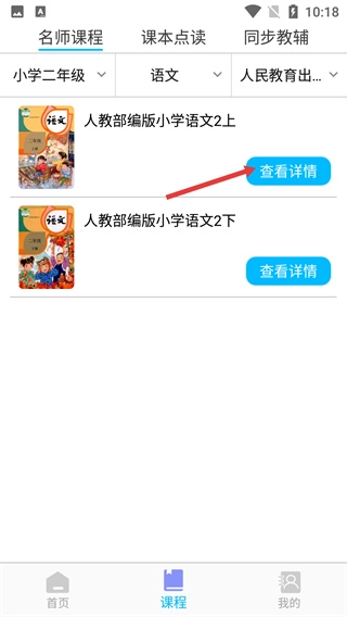 在课程页面筛选出目标年级和科目后,找到对应的课程,点击课程右侧的【查看详情】按钮,即可进入课程详情界面。