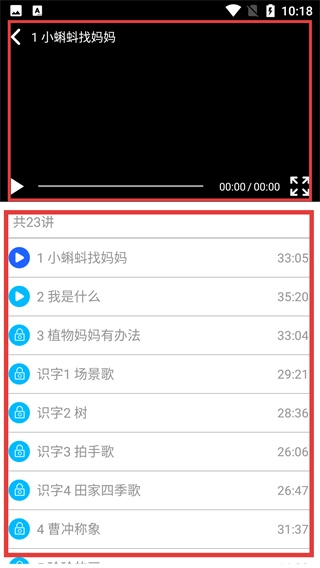 进入课程详情页面后,你可以查看该课程的课时列表,其中包含了每个课时的名称、时长以及解锁状态,并且能够选择对应的课时来进行学习。