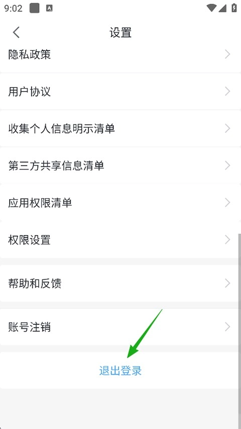 滑动到下方再次点击退出登录;