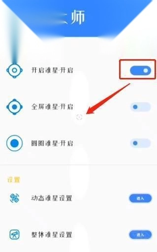 1、进入准星大师,点击下图所示位置即可开启准星。