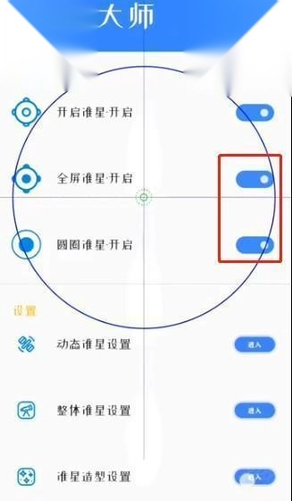 4、使用途中建议打开全屏准星和圆圈准星,可获得更好的效果。