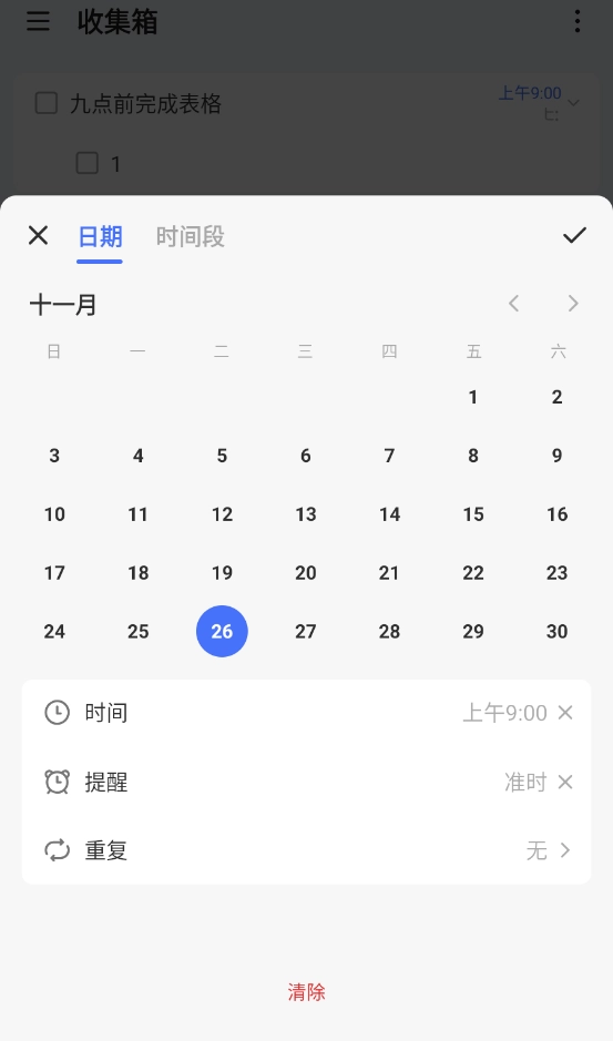 回到任务编辑界面,点击蓝色日期区域,即可重新设置任务的日期、时间、提醒方式以及是否开启重复提醒功能。