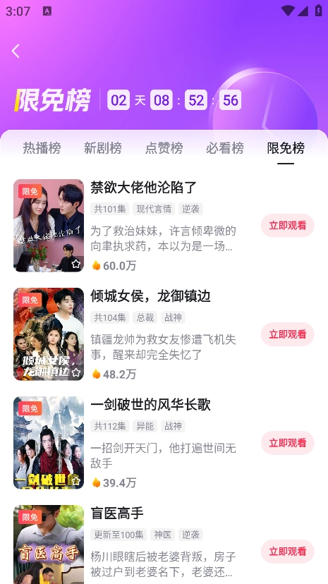 好看免费短剧是一个融合了丰富资源与智能互动功能的综合短剧观看平台,这里汇聚了甜宠、古装等多种题材的短剧,每天都会持续更新热门剧集,同时借助个性化推荐算法,能精准匹配用户的喜好。平台还支持离线观看和无倍速限制播放等实用功能,让用户不管何时何地都能享受4K超清画质和流畅的剧情体验,感兴趣的朋友们赶紧来体验吧!